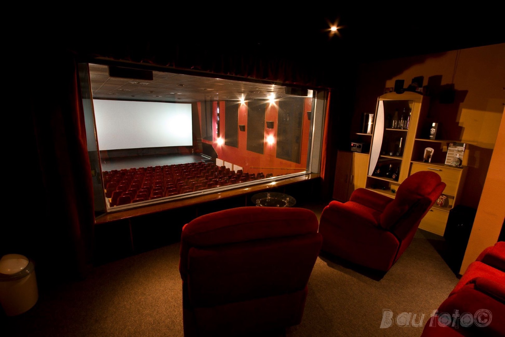 A moziterem lépcsőzetes üléssor elrendezésű, magas háttámlás, kartámaszos, palacktartóval felszerelt, felhajtható ülésű, a gyulai Fa-Fém kényelmes fotelüléseiből áll. A hátsó sorokban páros fotelülések is vannak, amelyek a szerelmespárok intimebb mozizását hivatottak megteremteni. Az utolsó sorban kanapék és kényelmesebb fotelek vannak, nagyobb sortávolsággal. A légkondicionált és akadálymentesített nézőtér 181 fő befogadására alkalmas. A terem hangzása 7.1-es hangrendszerrel bír és a tulajdonos a plafonra is szerelt hangszórókat, amellyel előkészült egyfajta ál-Atmos hangrendszerre. Az ezüsthatású vászon 10 x 5,5 méter nagyságú, minden helyről kiváló a rálátás. Érdekesség, hogy bár karzat a mozihoz nem tartozik, a gépház mellett balra egy VIP szoba is megbújik, amelyet a teremtől egy hatalmas plexiüveg választ el. Itt egy bárszekrénnyel ellátott exkluzív kényelmű 5 bársonyfotelt helyeztek el. Innen külön áron lehet filmet nézni és külön házimozi hangrendszer van bekötve.